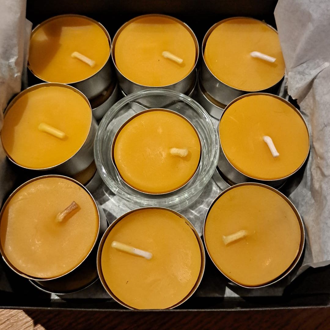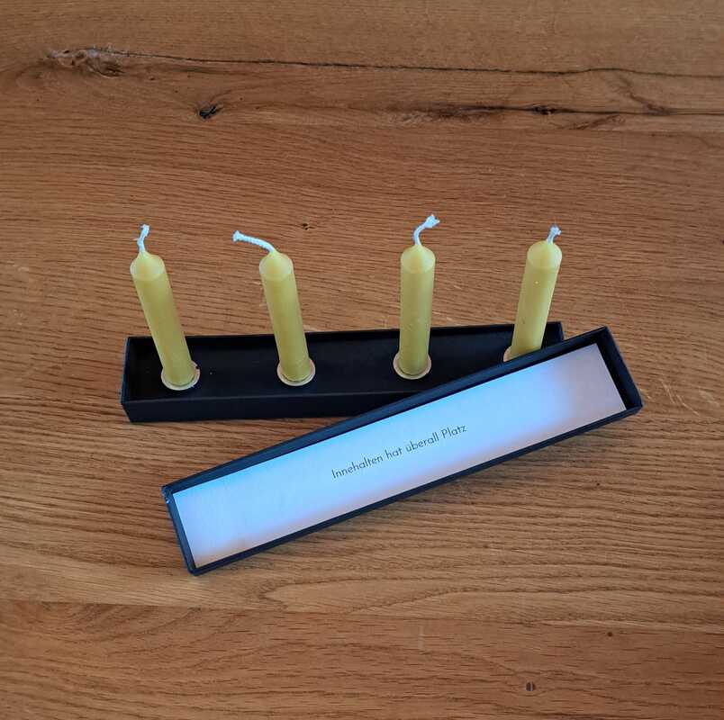 4 handgefertigte Kerzen, 1 Streichholzbriefchen, klein, steckbar und stabil |